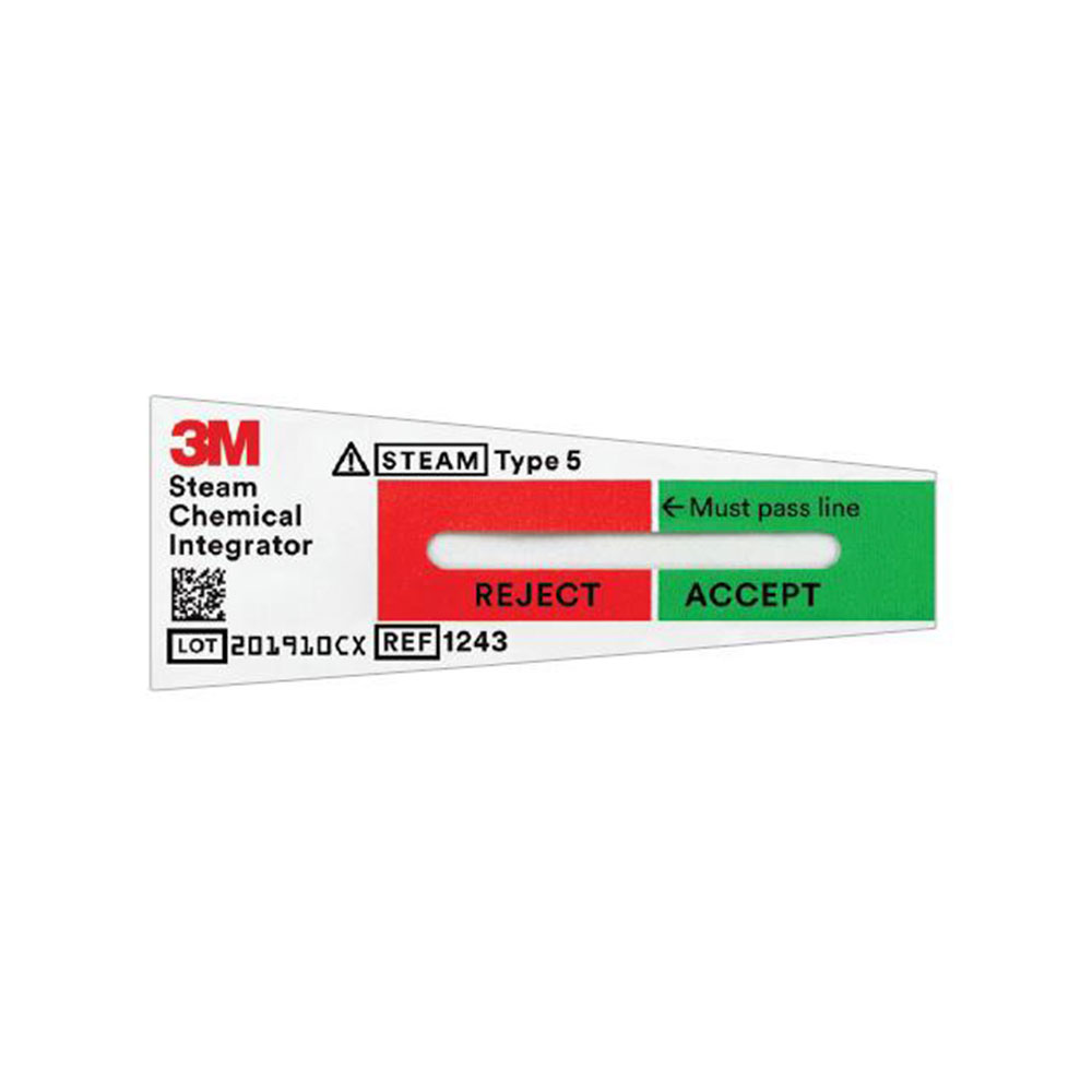 El Integrador Químico Attest 1243 es un indicador químico clase 51, que consiste en una tira de papel, un químico sensible a la temperatura y al vapor en forma de pellet, contenido en una laminación de papel, película y foil.