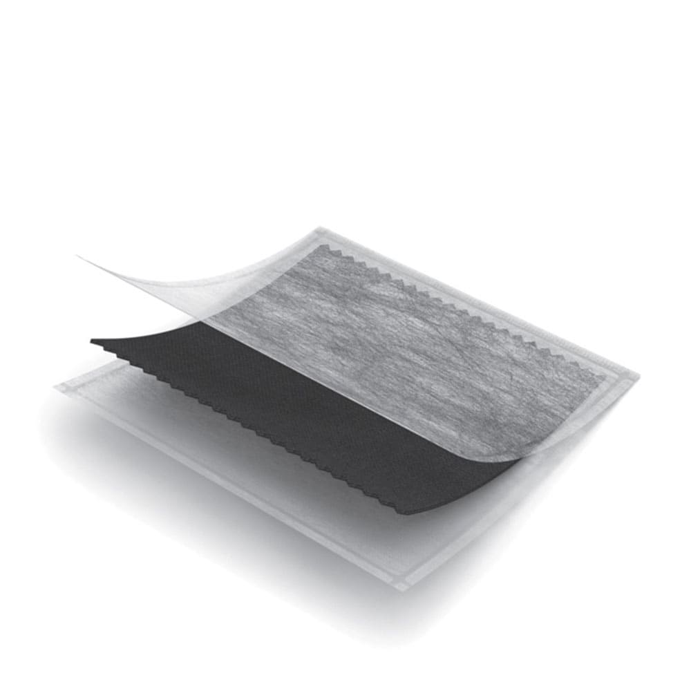 – El borde termosellado previene las fugas de exudado. Los apósitos tienen a ambos lados un material suave, no tejido, que permite colocarlo de uno u otro lado sobre la herida de manera cómoda para el paciente.