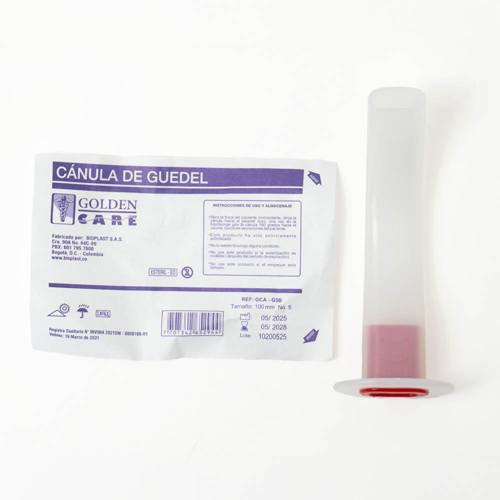 Diseñado para mantener despejada la vía aérea, impidiendo que la lengua y la musculatura faríngea obstruyan el flujo de aire, superficie lisa (sin bordes o aristas), con canal de ventilación. Aséptico, libre de patógenos, código de colores, ESTÉRIL por Óxido de Etileno.