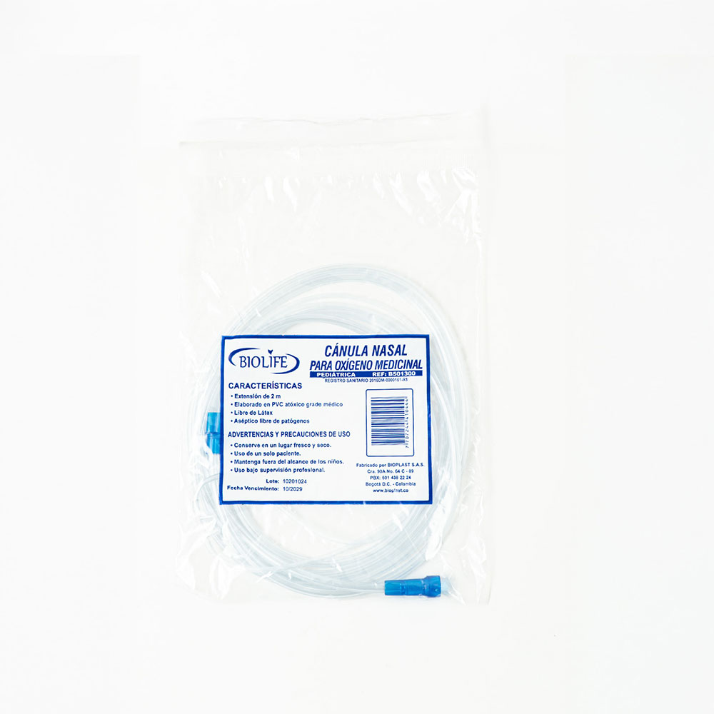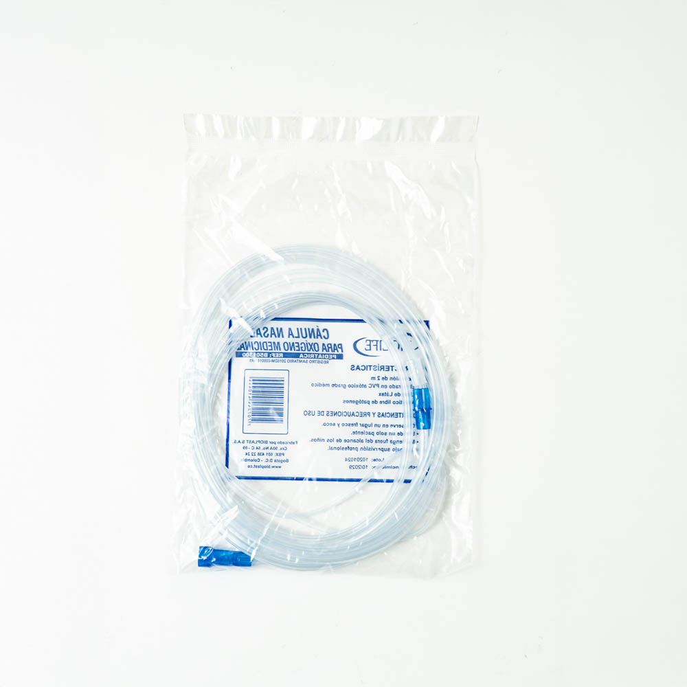 Canula Nasal adulto y pediatrica es un dispositivo diseñado para la administración de oxígeno a bajo flujo medicinal desde una fuente de oxígeno, tipo gafas, puntas flexibles y extra suaves, conector cónico para la fuente de oxígeno. por ser desechable elimina el riesgo de contaminación cruzada entre pacientes. la temperatura de plastificación garantiza la asepsia y libera el producto de presencia de patógenos