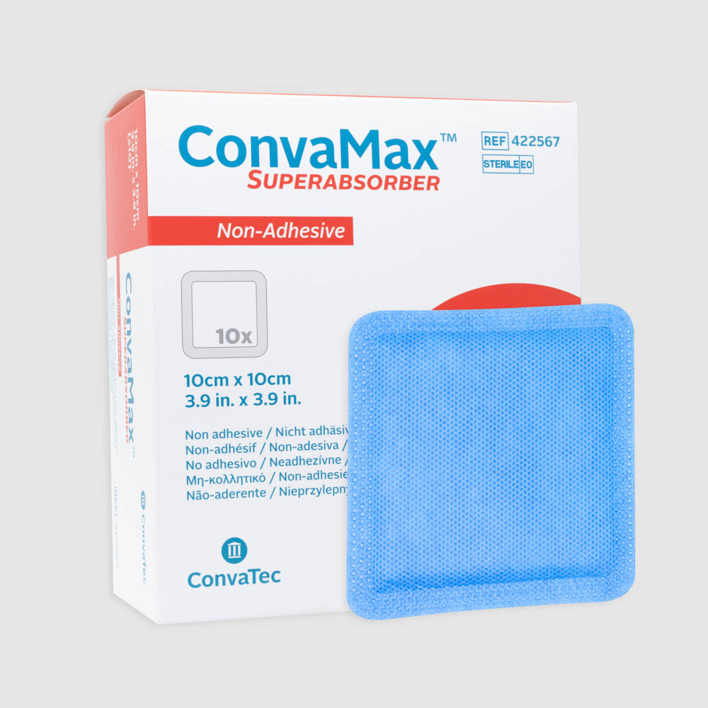 El apósito Súperabsorbente ConvaMax no adhesivo es un apósito estéril para heridas con exudado abundante, consistente en una capa no tejida permeable al aire e impermeable al agua con una capa de almohadilla superabsorbente.