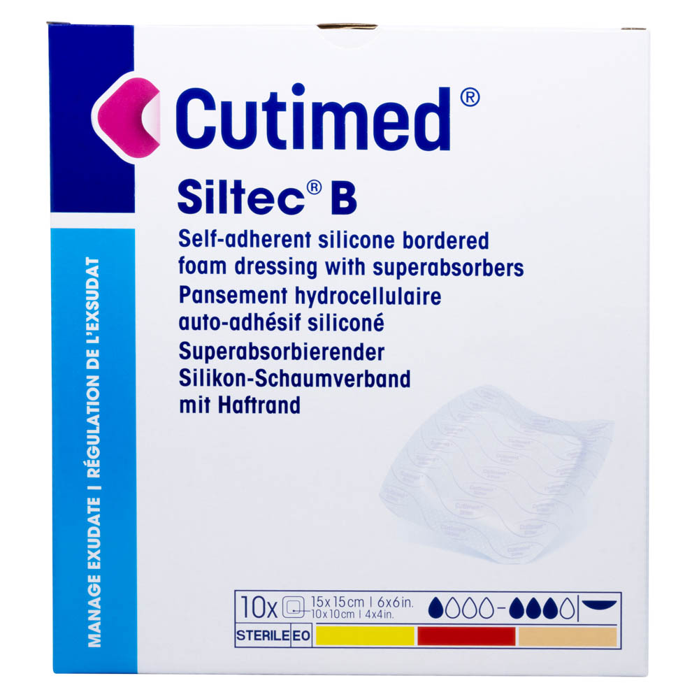 El surtido Cutimed Siltec B está indicado para heridas exudativas, como úlceras venosas y arteriales, úlceras por presión, úlceras de pie diabético, incisiones quirúrgicas, zonas de extracción y trasplante de injertos de piel, laceraciones o abrasiones. Se recomienda usar Cutimed Siltec B en heridas con exudado de leve a alto.