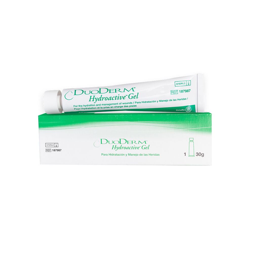 El gel DuoDERM forma un ambiente húmedo para la lesión, que fomenta el proceso de cicatrización ayudando al desbridamiento autolítico y permitiendo el retiro no traumático de los apósitos secundarios sin dañar el tejido recientemente formado.