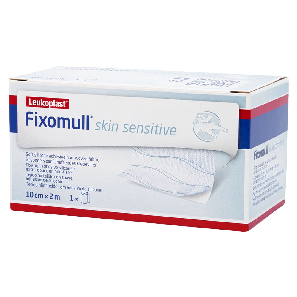 Fixomull piel sensible es un producto de fijación para áreas amplias del cuerpo con adhesivo de silicona, diseñado para fijar apósitos y dispositivos médicos en piel frágil o sensible.