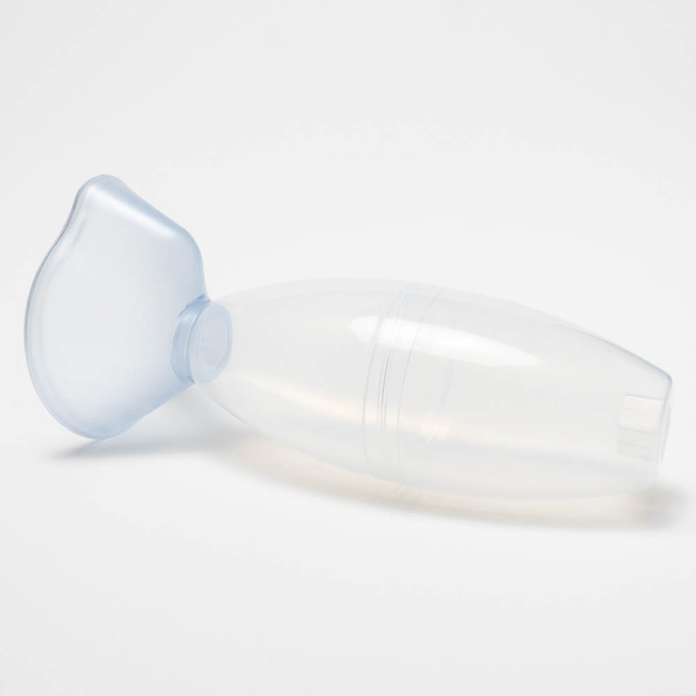 Inhalocamara adulto, pediatrico, desmontable para facilitar su limpieza, mascara ergonómica, suave y flexible, adaptable a la cara del paciente, diseñada exclusivamente para la anatomía del adulto, niño y recién nacido con una capacidad de 500ml. cuenta con válvula unidireccional de flujo.