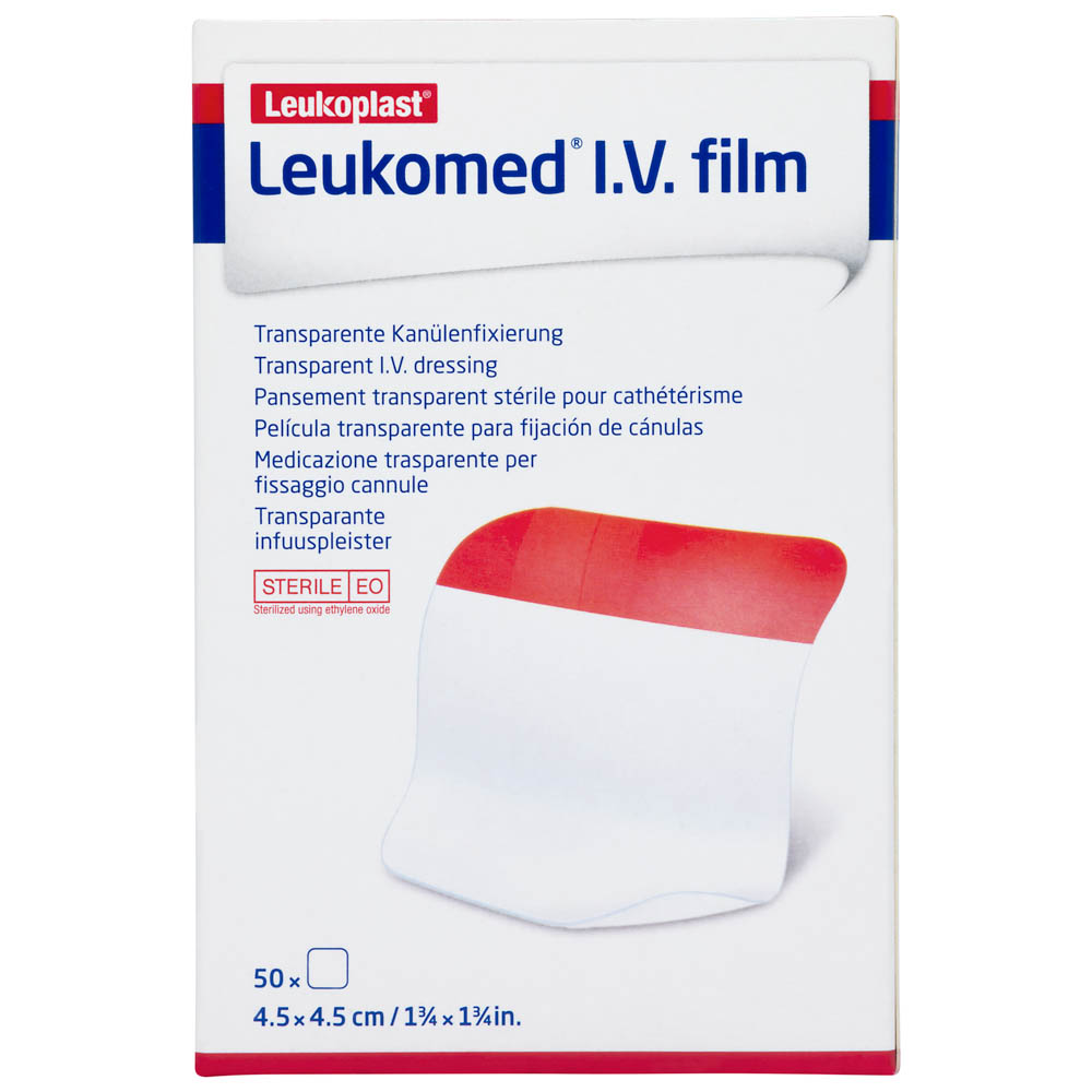Leukoplast Leukomed I.V Film es un aposito adhesivo esteril y transparente para fijación de cateteres centrales y perifericos, que cubre y protege los sitios de puncion contra la contaminacion.