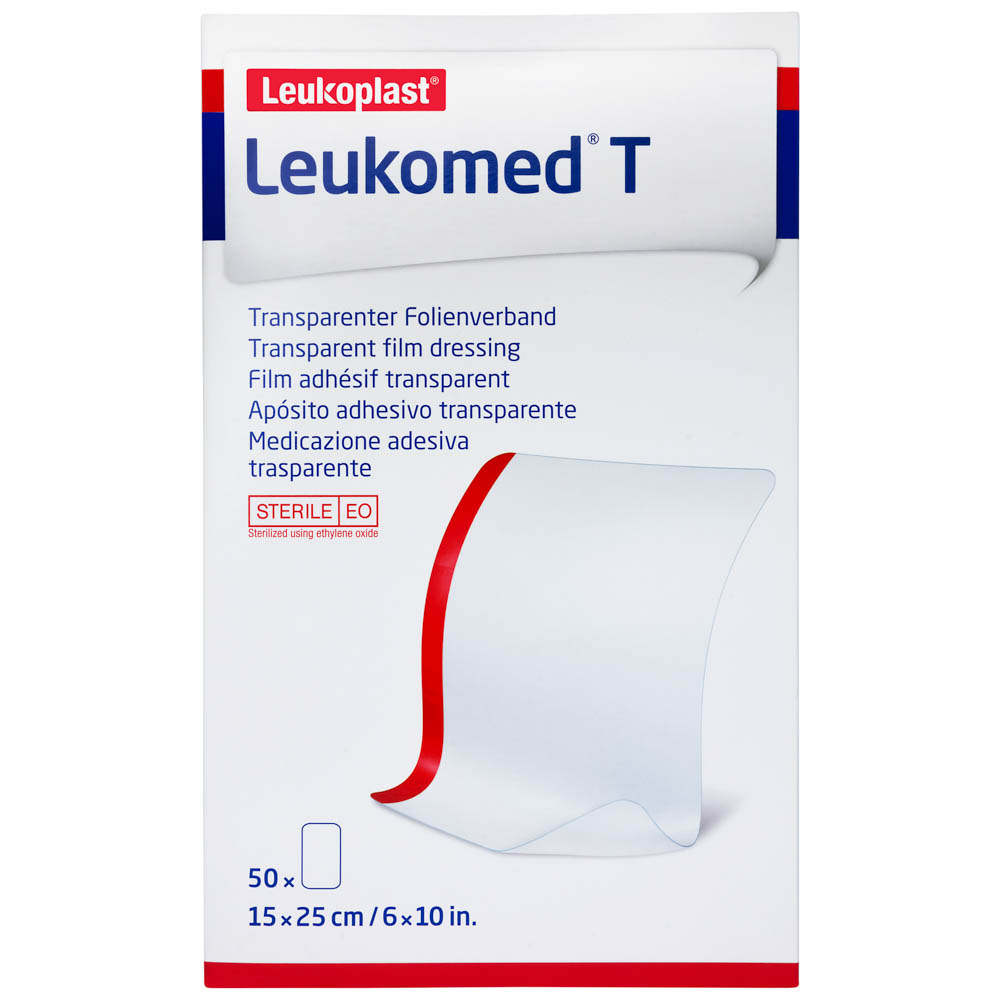 Leukoplast Leukomed T es una película estéril y transparente adhesiva para proteger y disminuir el riesgo de infección en heridas post quirúrgicas.
