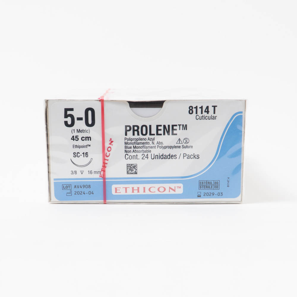 El producto Prolene Calibre 5/0 Cuticular de Longitud 45 cm Aguja SC-16 es un hilo quirúrgico de alta calidad utilizado en procedimientos médicos y quirúrgicos.