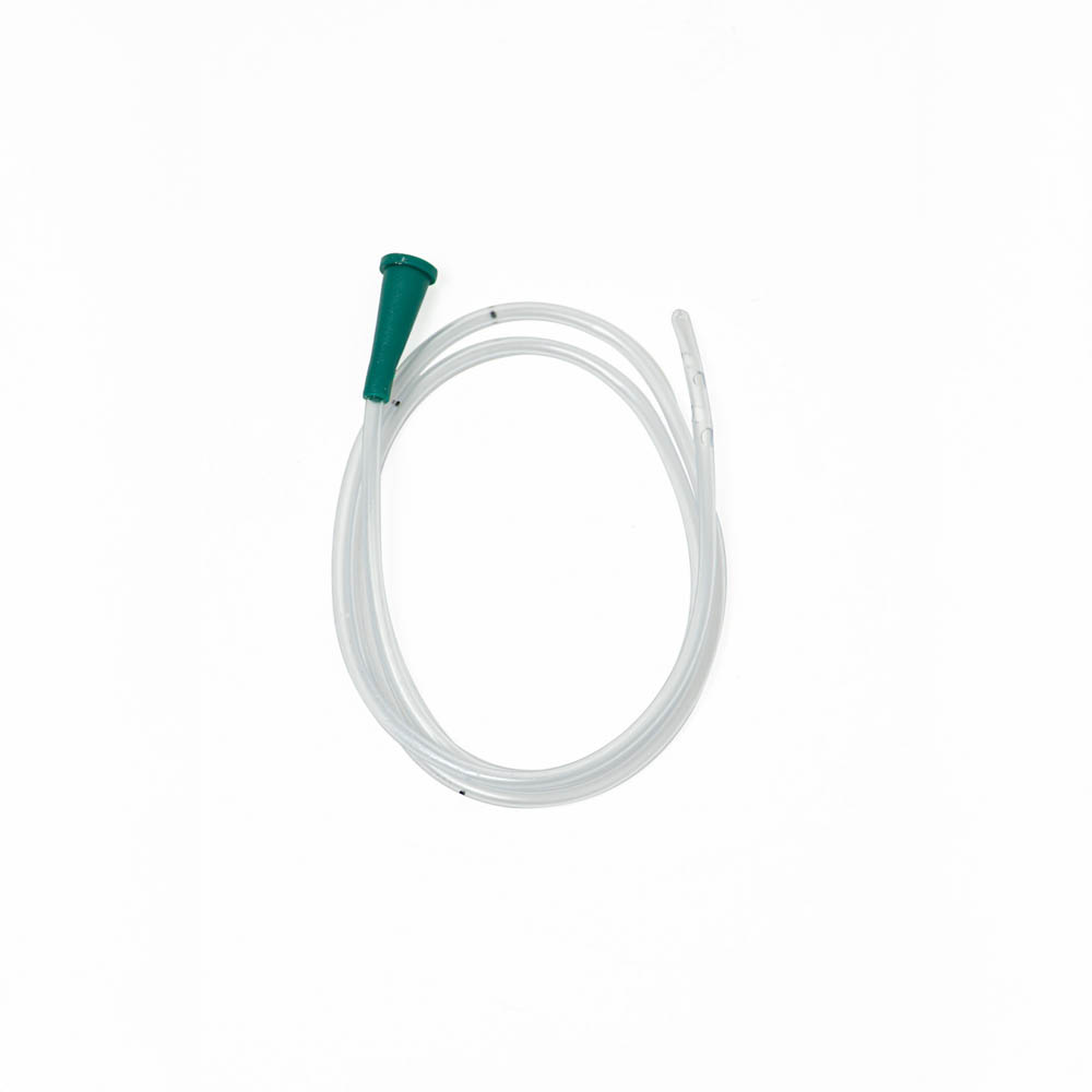 Sonda transparente de 85 cm con embudo verde en su parte superior. Extremo inferior cerrado y suave con 4 orificios en forma alterna y marcaciones que indican el nivel de introducción de la sonda.