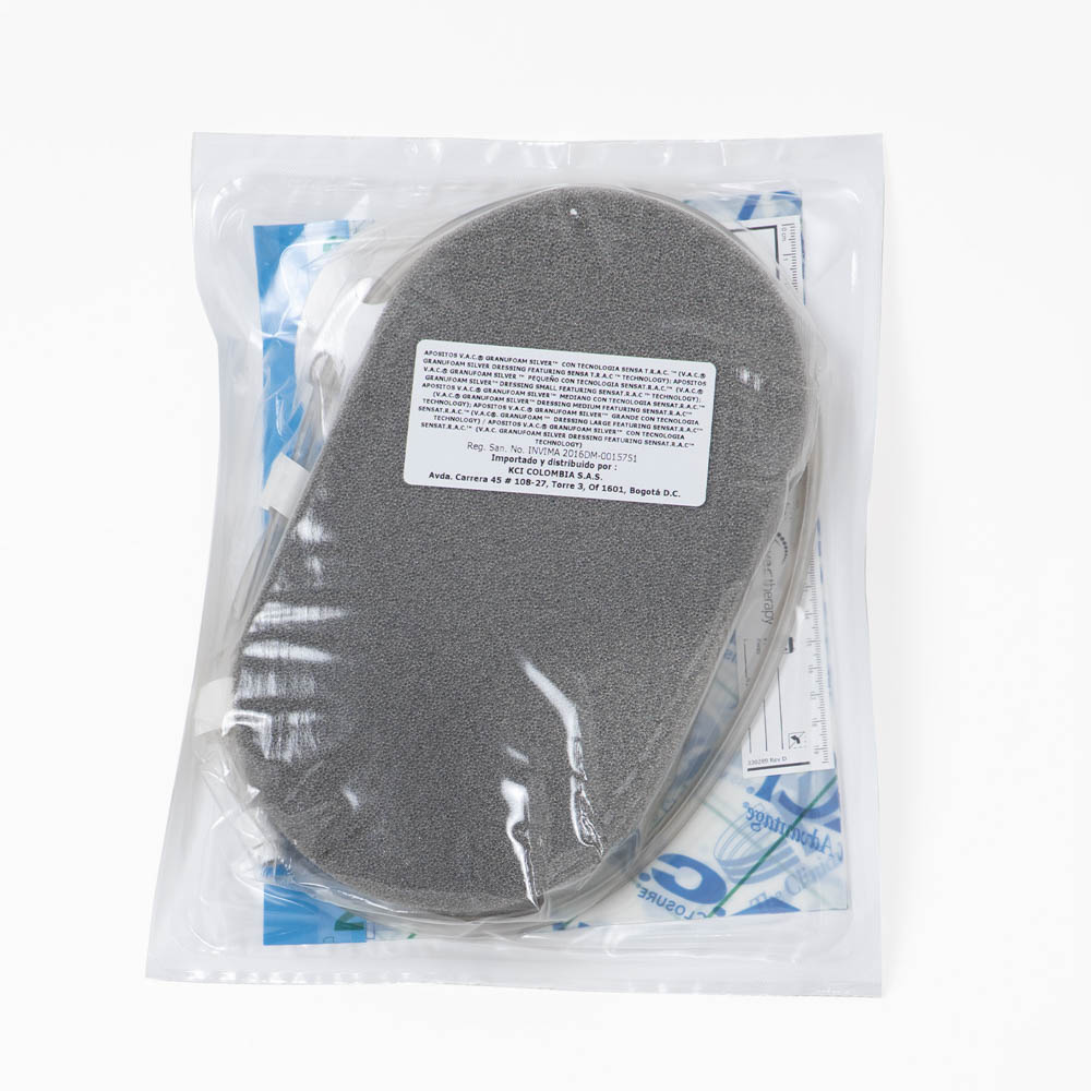 – Cada kit incluye: Vendaje V.A.C. GRANUFOAM SILVER, Película Adhesiva V.A.C. y Tubo de Almohadón SENSAT.R.A.C.