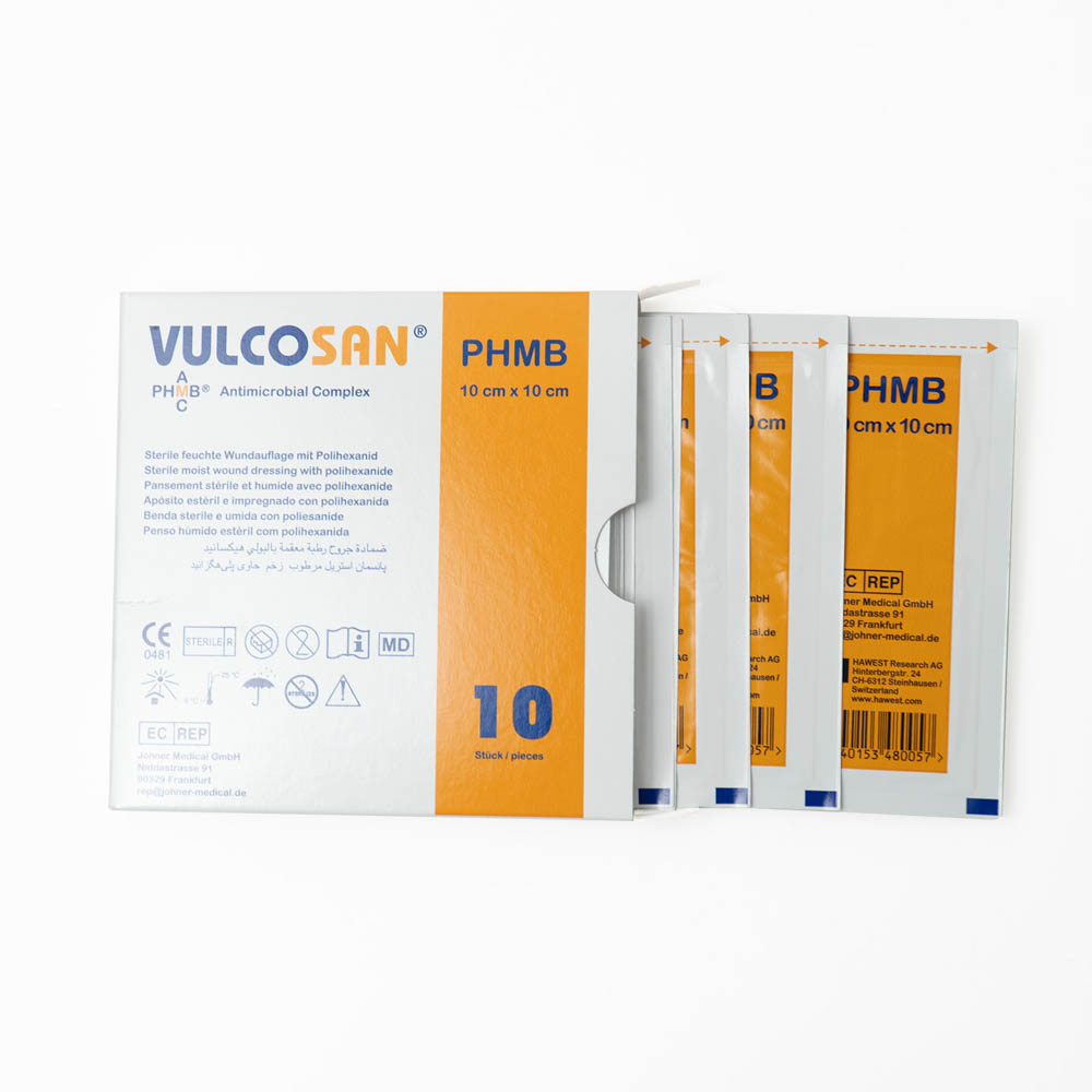 Es un apósito estéril listo para su uso, impregnado con una solución líquida de phmb antimicrobian complex. la solución sirve para la descontaminación y la profilaxis de la infección frente a microorganismos y para la protección preventiva frente a patógenos bacterianos y fúngicos en heridas agudas o crónicas.